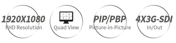 * Multiple interfaces, meet different needs (4*3G-SDI inputs and outputs, 1*HDMI input, RS485, GPI)