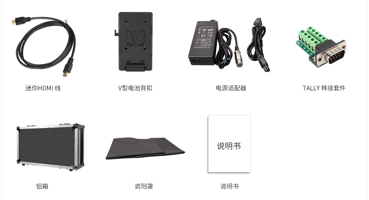 监视器可通过适配器或者锂电池供电。采用适配器供电,可通过卡侬头电源接口进行供电;锂电池供电可通过索尼V型电池扣板(标配),松下安东电池扣板(选配)进行供电。因此可为您提供极大的灵活性,无论室外或室内都能使用